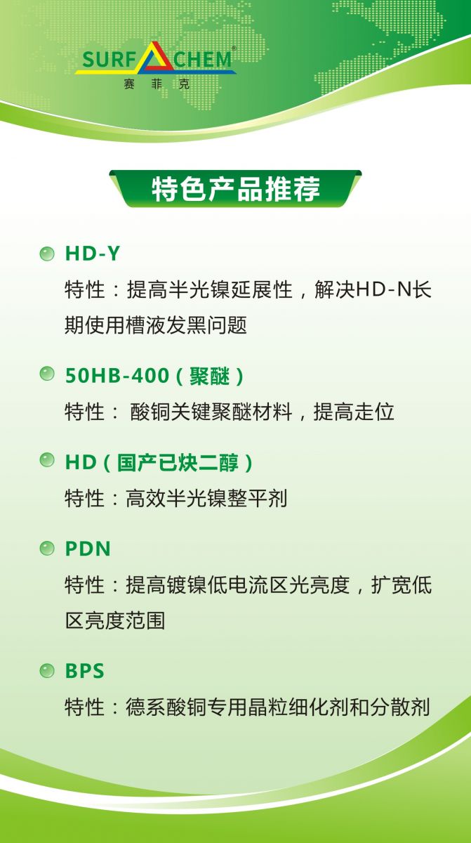 1.镍特色产品:HD-Y/HD(国产己炔二醇) PDN(低区光亮剂)